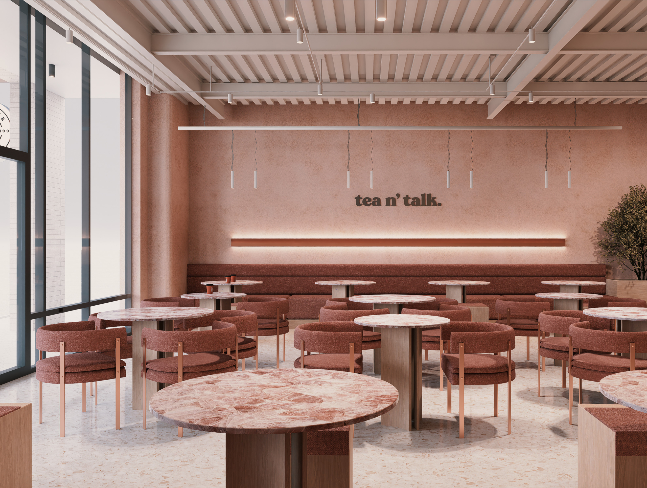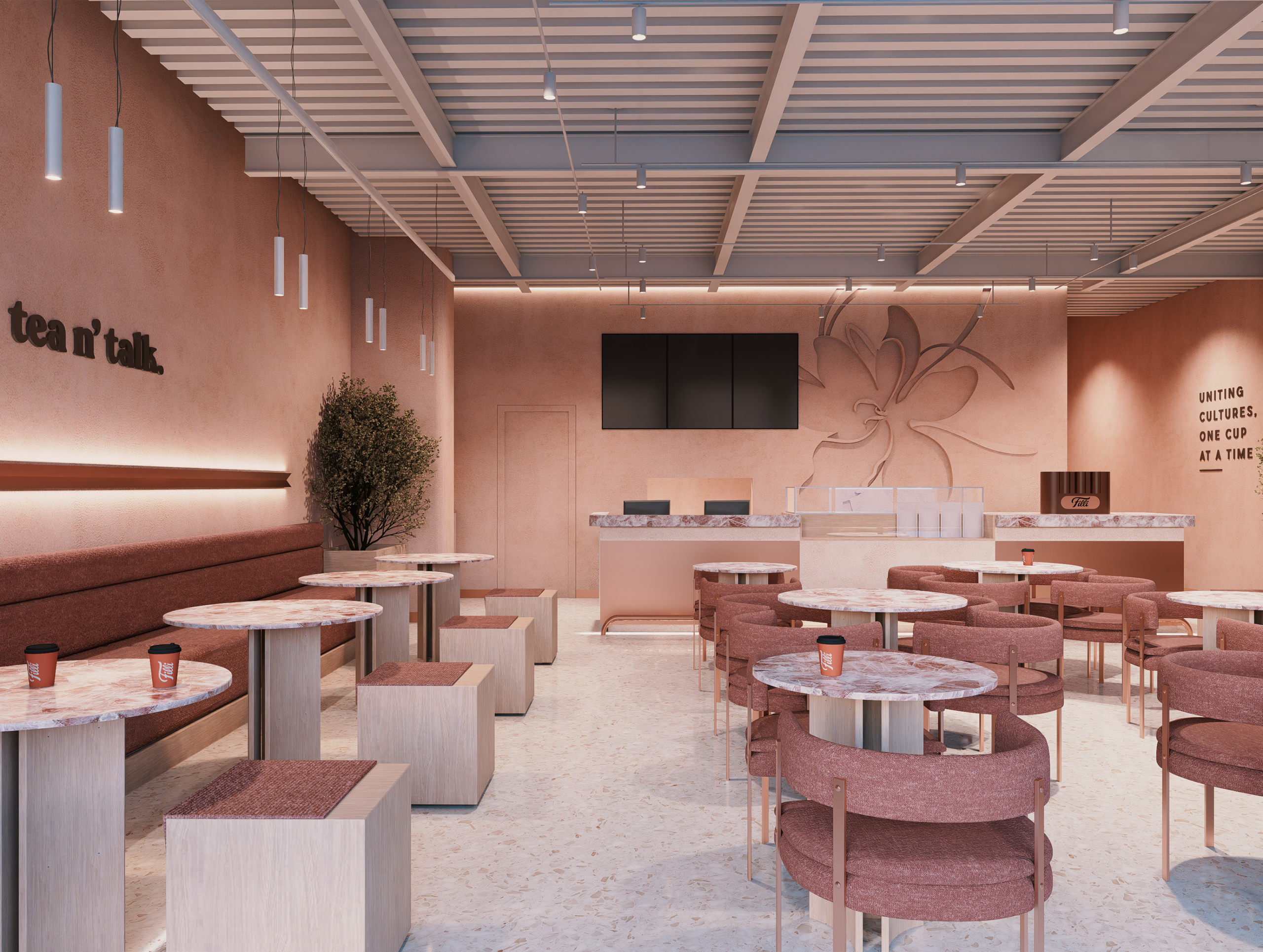 A Filli Café franchise in Dallas designed as a warm, modern space that celebrates the brand’s spirit of Tea n’ Talk.