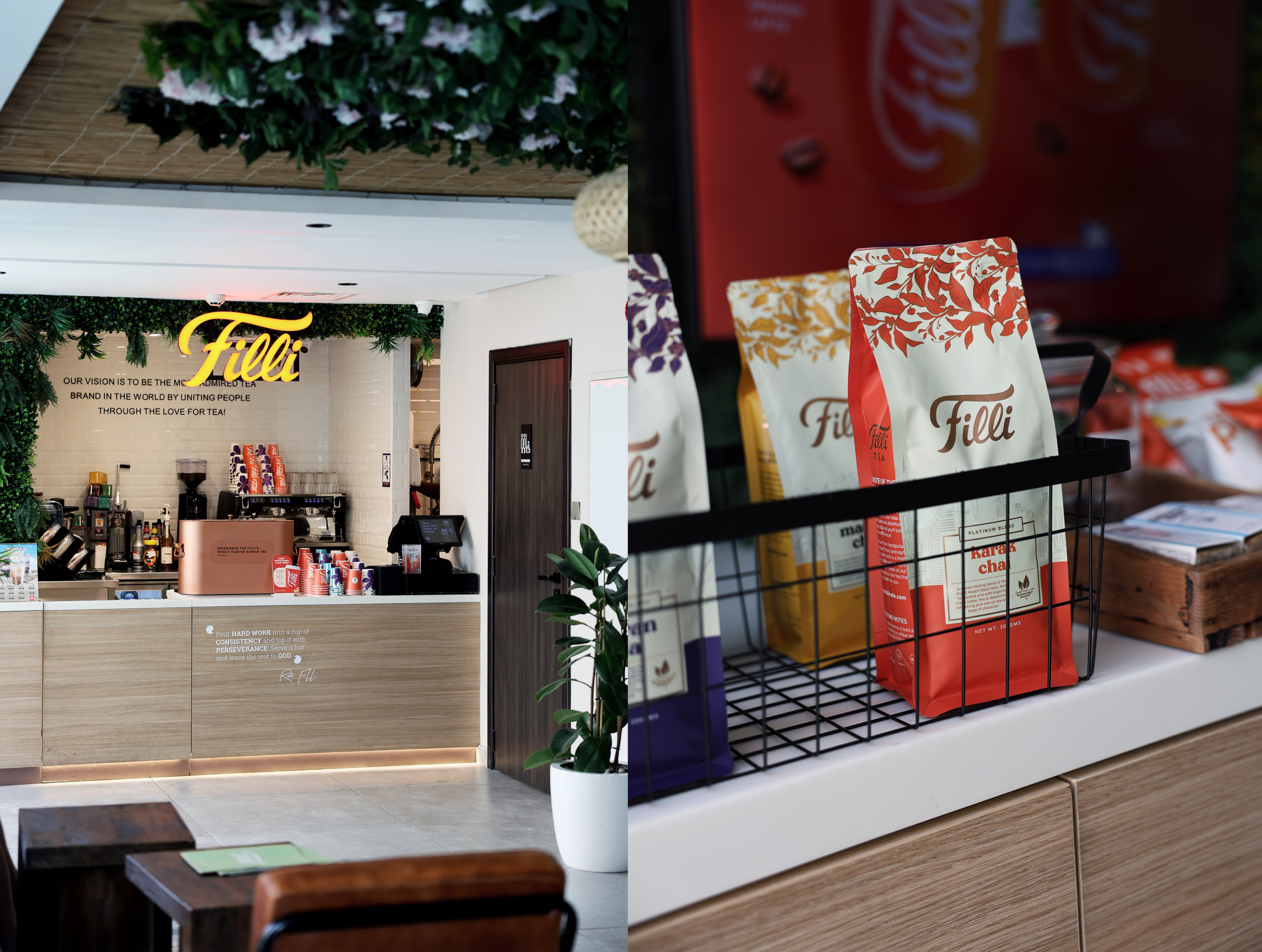 At an urban scale, the café acts as both threshold and retreat. Externally, the discreet placement of the Filli emblem against the whitewashed NAS House façade reinforces its connection to the collective identity, while internally, spatial planning emphasises fluid circulation, transparency, and visual openness.