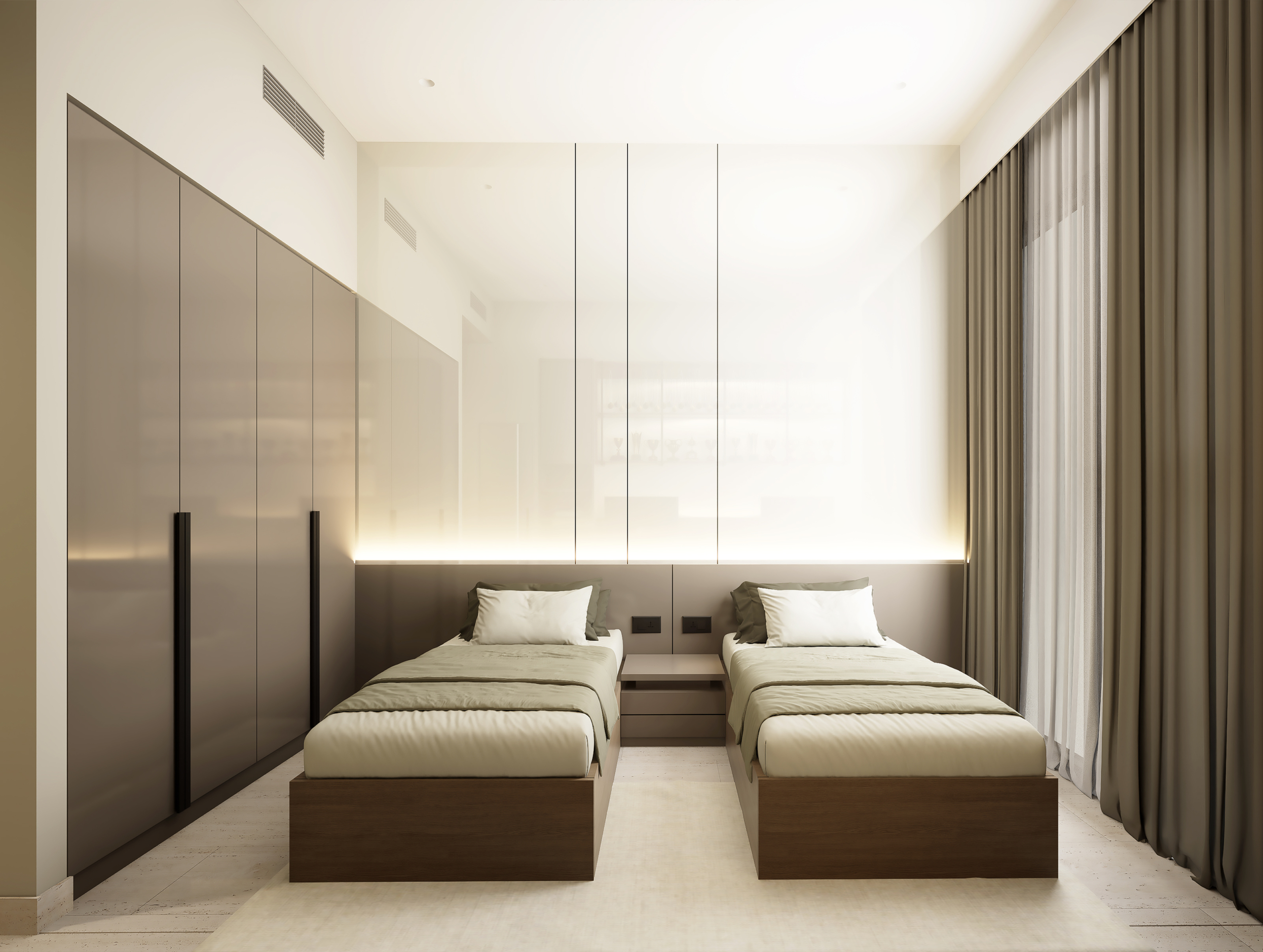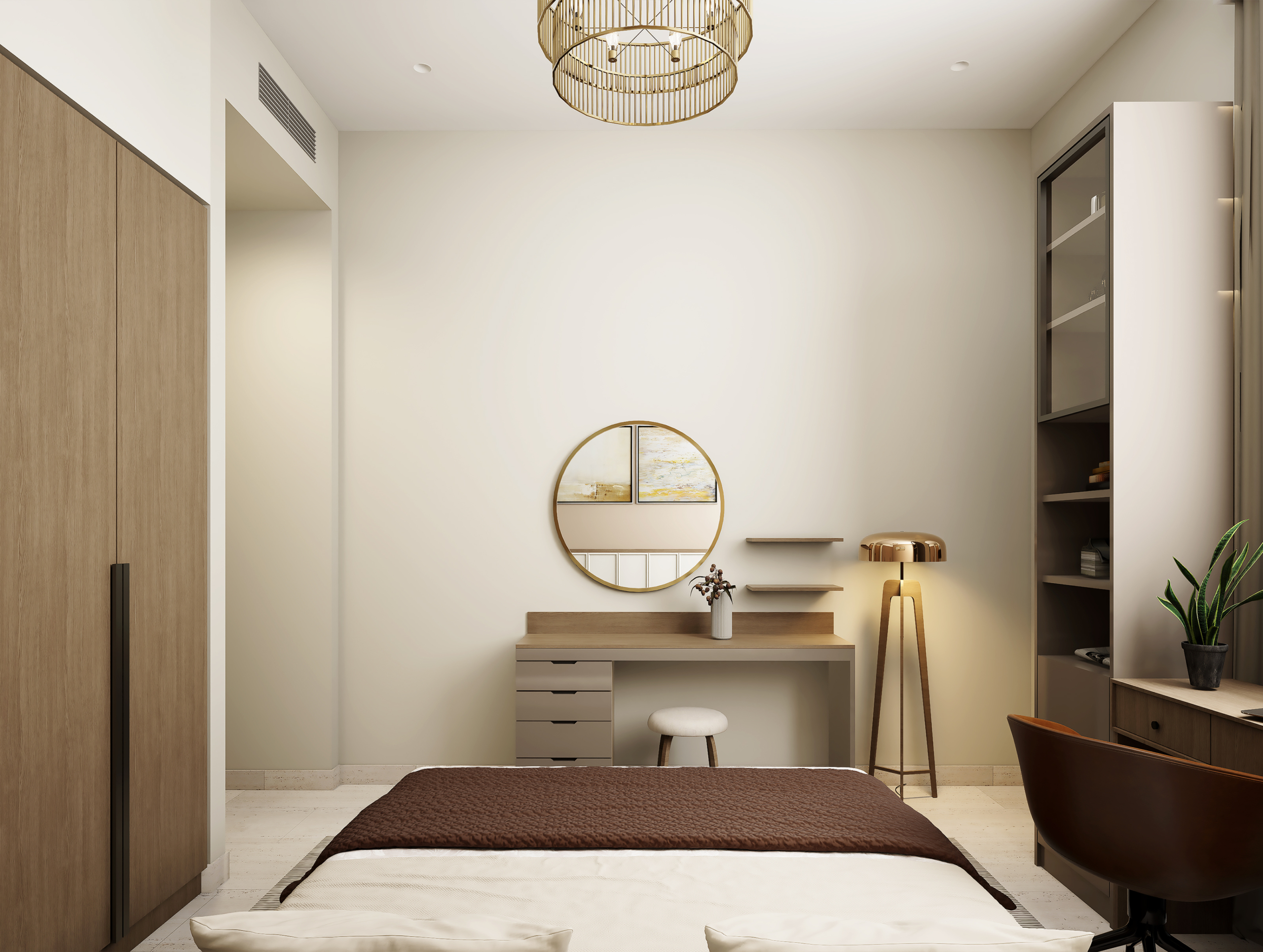 Carefully chosen materials and crafted finishes define the character of the home. From natural wood accents to soft fabrics and minimal metallic details, each space carries a sense of rhythm and cohesion. The design approach ensures that every area feels purposeful and harmonious, making the villa a refined residential experience tailored to modern living in Dubai.